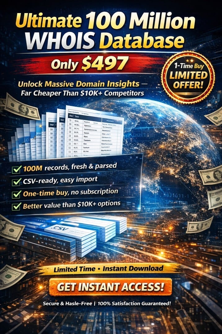 Ultimate 100 Million WHOIS Database: Unlock Massive Domain Insights for Just $997 – A Steal Compared to $10,000+ Competitors!